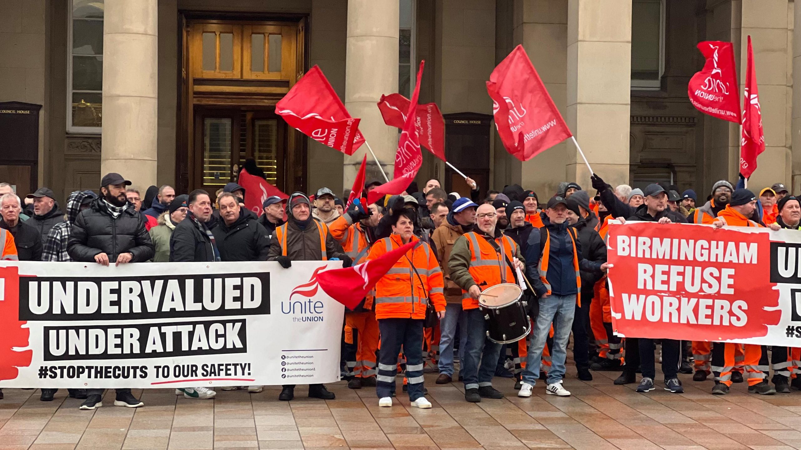 Birmingham Belediyesi’nin iflası sonrasında, belediye maliyetlerini düşürmek için personel sayısını azaltmaya gitti. Haliyle çöp toplama işçilerinin iş yükü arttı ama beklendiği gibi maaşları artmadı. Uzun süredir durumdan memnuniyetsizliklerini ifade eden işçiler ve yetkili sendikaları eşit ücret ve iyileştirilmiş iş koşulları talep ederek maaş kesintileri ve bazı iş pozisyonlarının kaldırılması nedeniyle 11 Mart 2025 tarihinde süresiz greve başladı. Yaklaşık 400 işçinin katıldığı bu grev, şehrin sokaklarında çöp yığınlarının birikmesine sebep oldu. Fare ve diğer haşerelerin sayısında yaşanan artış halk sağlığı açısından ciddi riskler oluşturuyor.