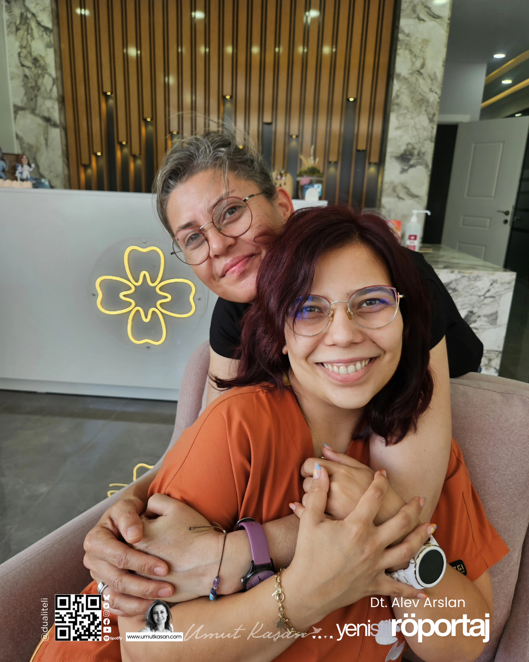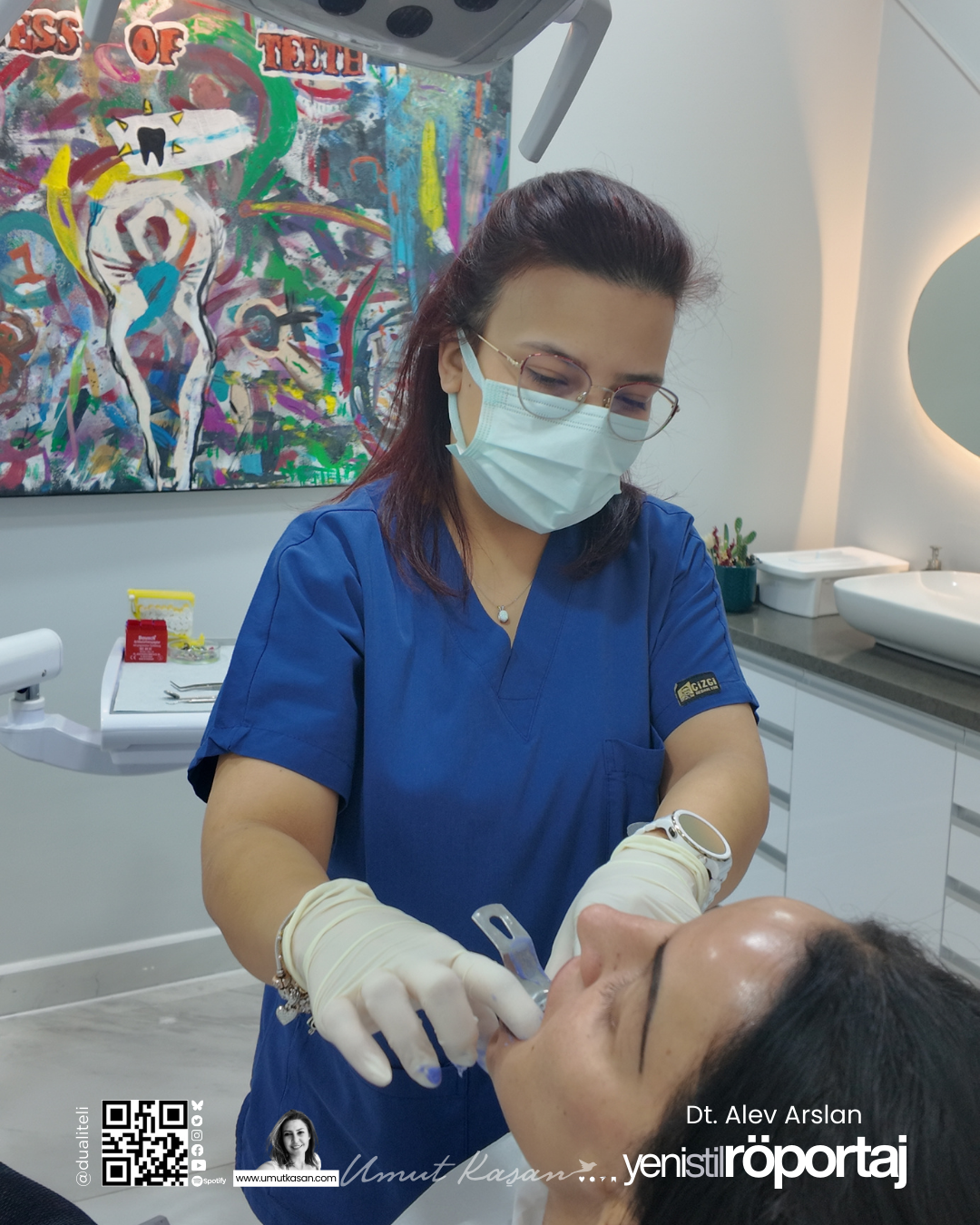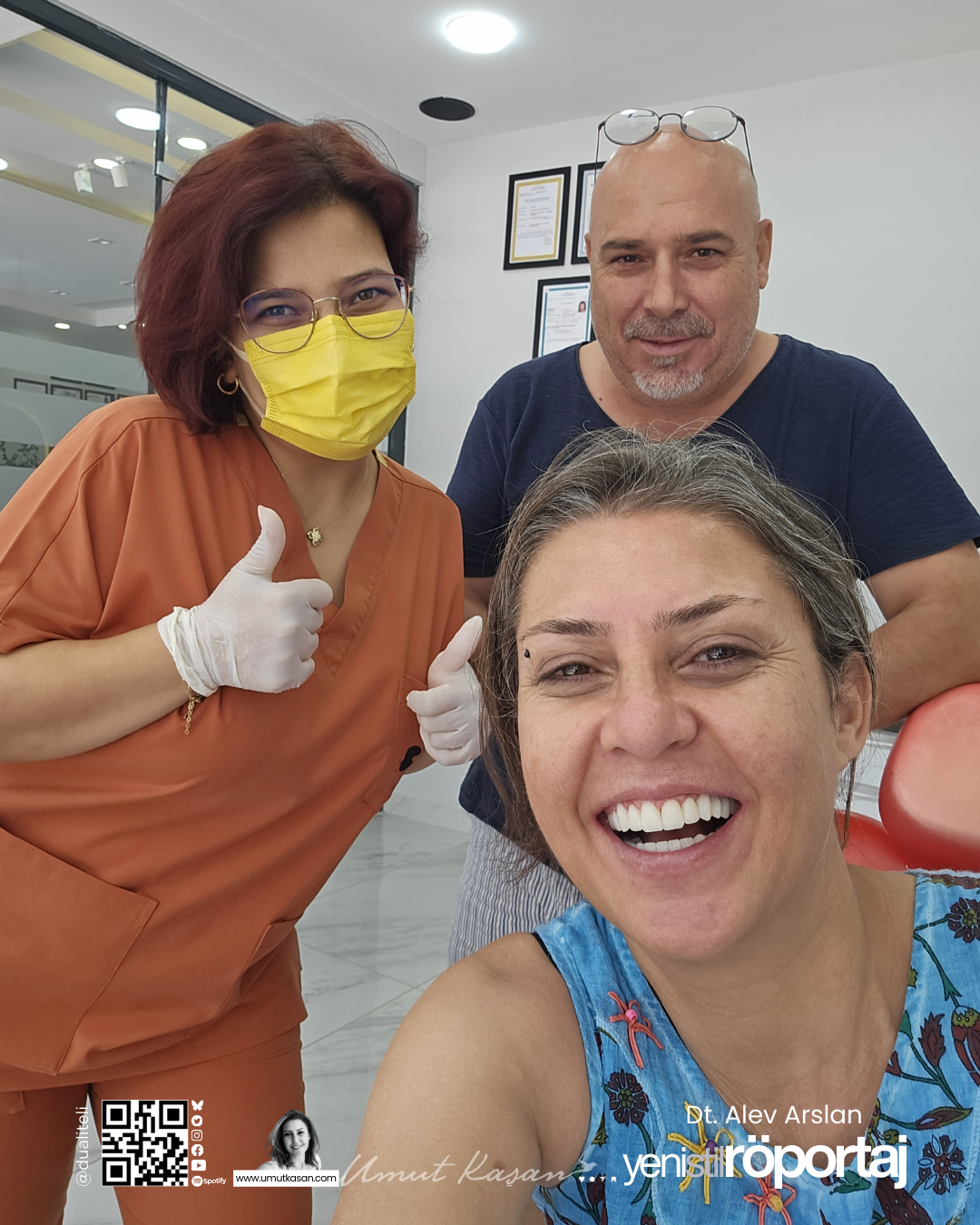 Öncelikle genç bir diş hekimi olarak kendisine okul hayatından hemen sonra günümüzün zor koşullarında kendi diş kliniğinde hekimlik yapmanın zorluklarını sordum. Didim’de her yıl açılan yeni diş kliniklerin olduğunu biliyoruz, günden güne yükselen Sağlık Turizmi ile gelişen rekabet piyasasının hastalar ve yapılan uygulamalara olan yansımasını sordum. İnstagram’da karşımıza çıkan görselleri, inanması güç muhteşem değişimlerin neler olduğunu nasıl olduğunu sordum. Diş hekimliğine ve de uygulanan çeşitli tedavi yöntemlerine dair bilmek ve öğrenmek istediğim pek çok detayı sordum. Diş temizliği, implant, kaplama ya da Hollywood Smile gibi popüler sağlık terimlerini sordum. Baba kız birlikte çalışmanın nasıl olduğunu?  Didim’de sayıları giderek artan diş kliniklerinin gerek hastalar gerekse de meslek örgütleri açısından yansımasını, genç bir hekim olarak günümüz koşulları ile değerlendirmesini bekleyerek sorular sordum. Açıkçası bazı sorularıma Umut’cuğum keşke bunu sormasaydın demesini bekledim ama demedi. Takır takır samimi cevaplar aldığım keyifli bir sohbet oldu. Diş hekimi olmak isteyen genç arkadaşlarımın özellikle okumasını istediğim bu özel röportajın keyifle okumasını dilerim.