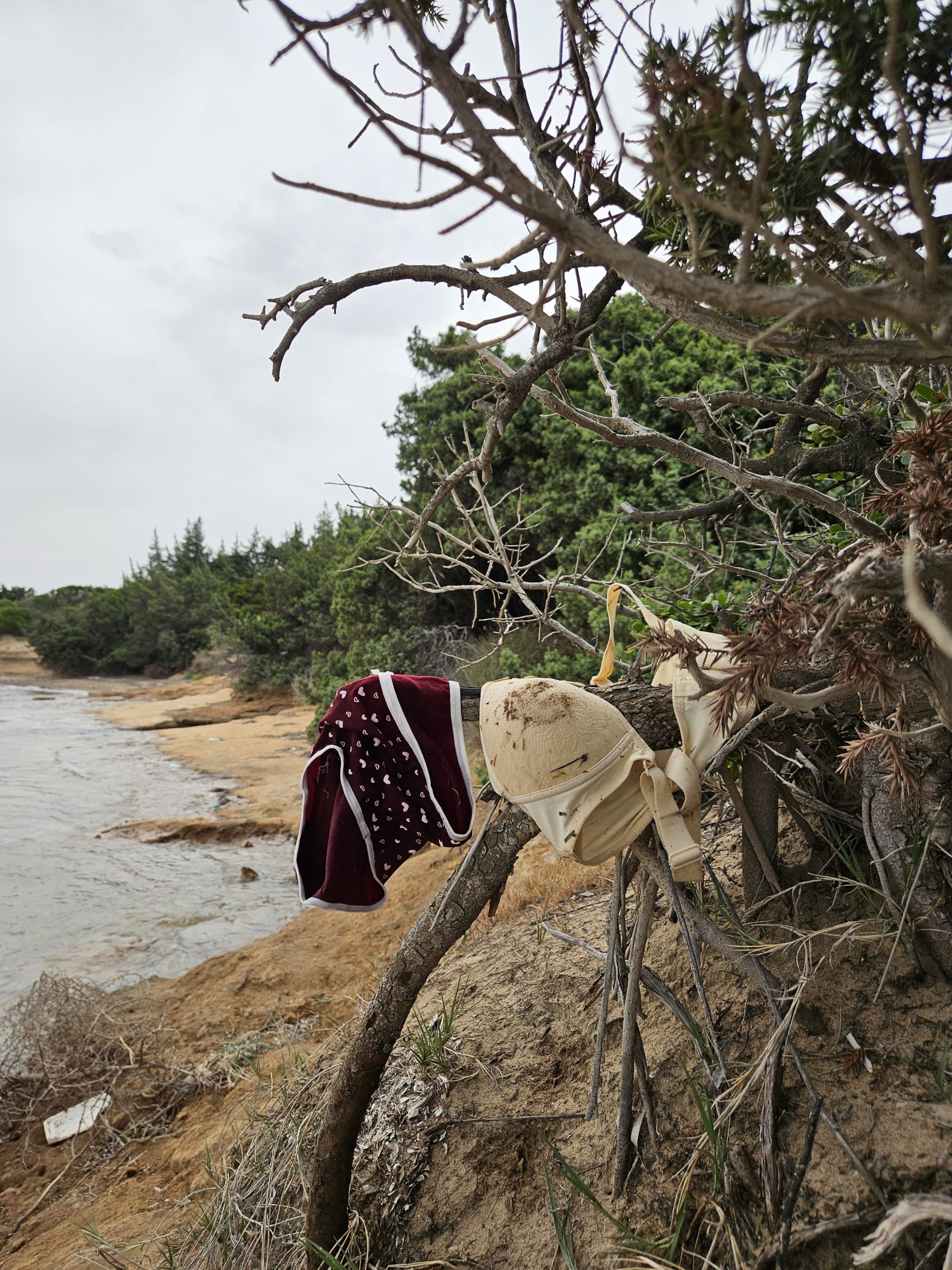 Geçenlerde, piknik günü deniz kenarı ile barışmak, biraz sessizlik, bolca iyot, bir tatlı huzur için Didim Orman Kampı’nın plajına indik arkadaşımla. Denize bakarak düşünmek ve sohbet etmek için. İnsana bu kadar iyi gelen çok az şey var. Ağaç dallarında şu gördüğümüz ve aslında hiç görmek istemediğimiz bu manzara karşısında da kalakaldık. Ne düşünelim, nasıl düşünelim bilemedik. Acaba kalpli don seven kadın kişisi, ağaç dalına asılı halde onu bekleyen, kendine ait bu iki detayı hatırlıyor mu? Arıyor mu?